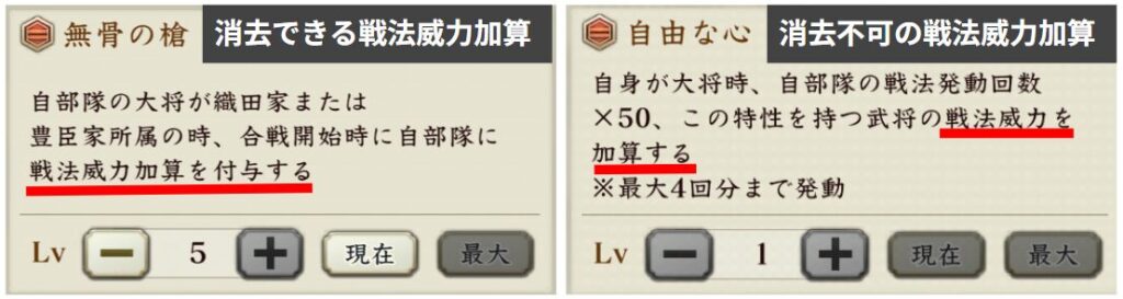 【戦法威力加算】等は強化効果としても特性効果としても存在する効果です。