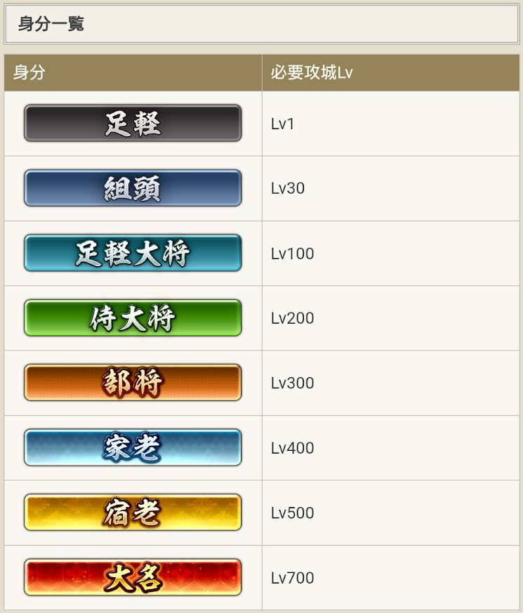 | 目標 攻城LV | 解説 |