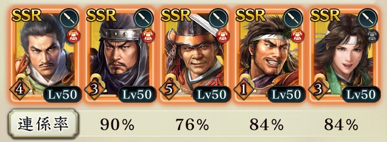 武将の集めやすさ・育てやすさを意識しているため、理想的な編成や最強編成といった物にはなっておりません。その点はご容赦願います。
