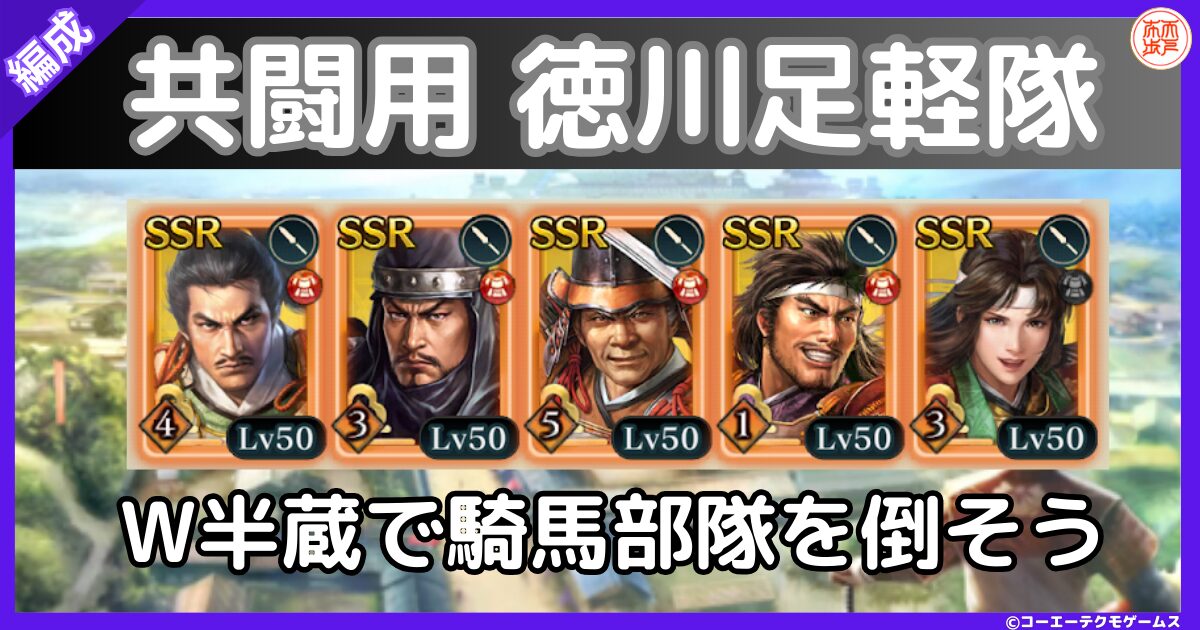 今回は共闘イベント用の編成として対騎馬特化の武勇徳川足軽隊を紹介いたしました。